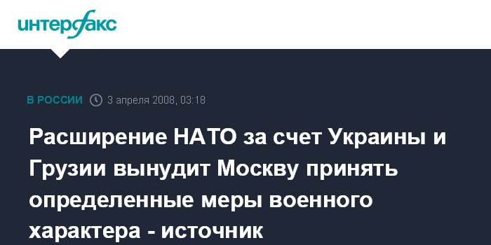 Расширение НАТО за счет Украины и Грузии вынудит Москву принять определенные меры военного характера - источник
