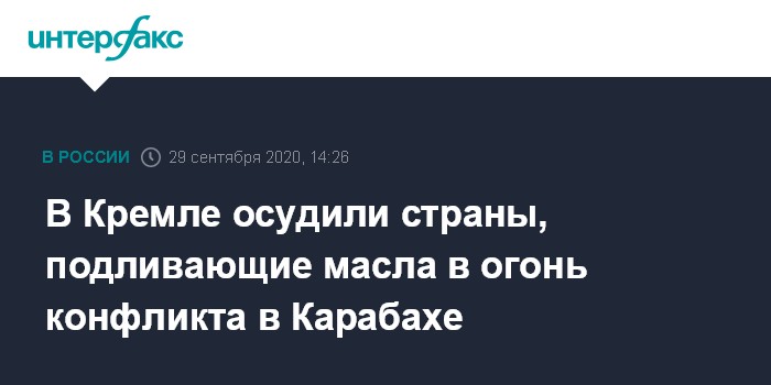 В Кремле осудили страны, подливающие масла в огонь конфликта в Карабахе