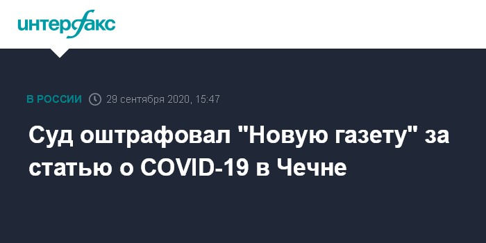 Москва. 29 сентября. INTERFAX.RU - Мировой суд Басманного района Москвы вновь оштрафовал "Новую газету" и ее главного редактора Дмитрия Муратова суммарно на 260 тысяч по статье о фейковой информации, на этот раз за материал Елены Милашиной о коронавирусе в Чечне.