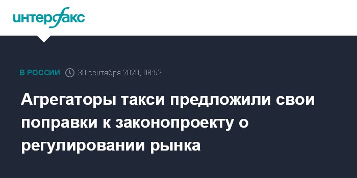 Москва. 30 сентября. INTERFAX.RU - Крупнейшие агрегаторы такси сформировали через рабочую группу при Российском союзе промышленников и предпринимателей (РСПП) и направили в Госдуму поправки к законопроекту о регулировании рынка, сообщает газета "Коммерсантъ" в среду.
