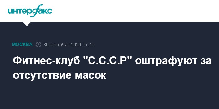 Москва. 30 сентября. INTERFAX.RU - В Москве проверяющие Роспотребнадзора и Объединения административно-технических инспекций Москвы (ОАТИ) обнаружили нарушения масочно-перчаточного режима в фитнес-клубе сети "С.С.С.Р" на Верейской улице. Клубу грозят штрафы.