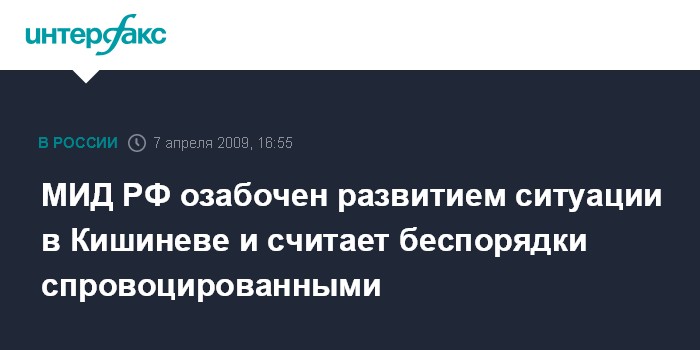 Москва. 7апреля. INTERFAX.RU - В Москве глубоко озабочены ситуацией в Молдавии, где после состоявшихся парламентских выборов происходят массовые беспорядки.