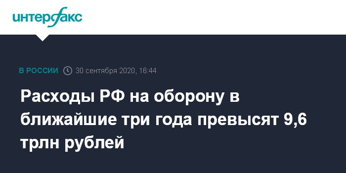 Расходы РФ на оборону в ближайшие три года превысят 9,6 трлн рублей