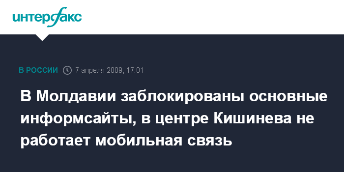 Москва. 7 апреля. INTERFAX.RU - В Молдавии заблокированы основные информационные сайты, в центре Кишинева не работает мобильная связь.