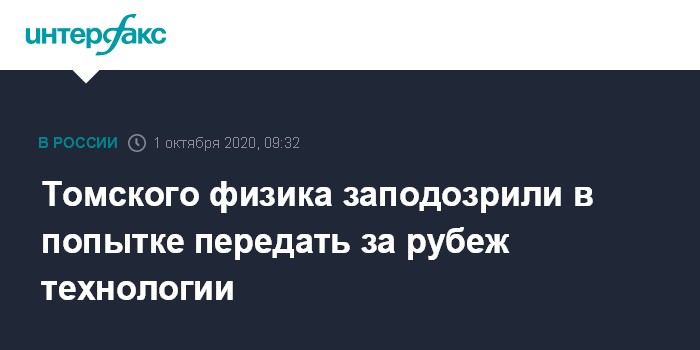Москва. 1 октября. INTERFAX.RU - В Томске задержали физика Александра Луканина по подозрению в попытке незаконно передать другому государству российские технологии, сообщил информированный источник "Интерфакса".
