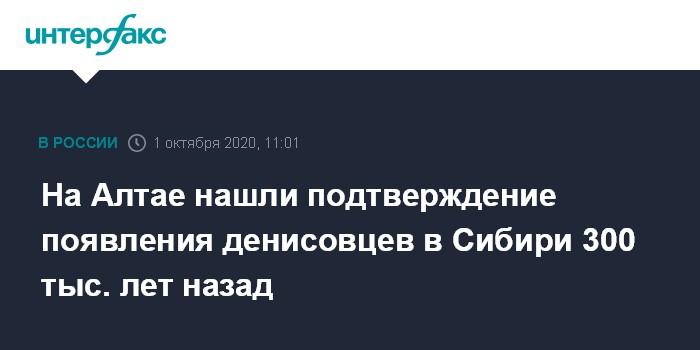 Москва. 1 октября. INTERFAX.RU - Археологи нашли новые подтверждения тому, что самостоятельный подвид древних людей - денисовский человек - появился на Алтае приблизительно 300 тысяч лет назад. Об этом сообщил журналистам заведующий отделом археологии каменного века Института археологии и этнографии (Новосибирск), член-корреспондент РАН Михаил Шуньков.