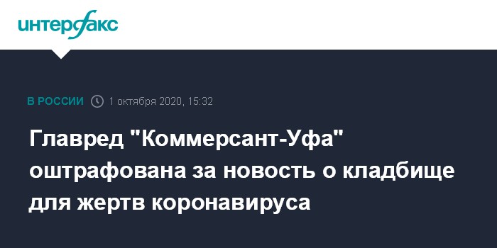 Главред "Коммерсант-Уфа" оштрафована за новость о кладбище для жертв коронавируса