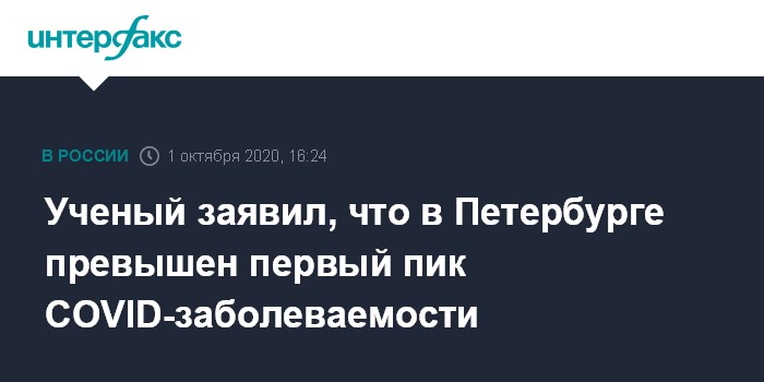 Москва. 1 октября. INTERFAX.RU - В Санкт-Петербурге уже более 11 тыс. больных коронавирусом, что превышает июньский пик заболеваемости и позволяет говорить о дальнейшем росте, заявил доцент Санкт-Петербургского политехнического университета, кандидат технических наук Алексей Боровков.