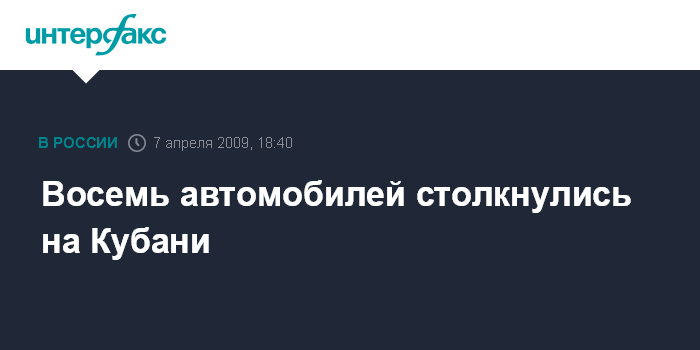 Краснодар. 7 апреля. INTERFAX.RU - В Красноармейском районе Краснодарского края во вторник на автодороге столкнулись восемь автомобилей. По предварительным данным, пострадали два человека, сообщила пресс-служба УГИБДД ГУВД края.