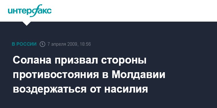 "Я очень озабочен ситуацией в Кишиневе, сложившейся после парламентских выборов 5 апреля. Международные наблюдатели отметили в своем предварительном отчете, что голосование соответствовало всем международным стандартам и обязательствам, принятым Молдавией на международном уровне. Они же отметили необходимость внедрения в будущем определенных улучшений в области обеспечения независимости избирательного процесса от любых административных вмешательств, с тем чтобы повысить доверие электората", - напомнил Солана.