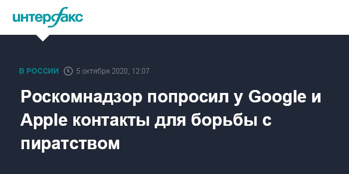 Роскомнадзор попросил у Google и Apple контакты для борьбы с пиратством