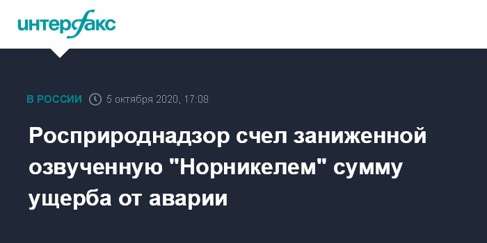 Росприроднадзор счел заниженной озвученную "Норникелем" сумму ущерба от аварии