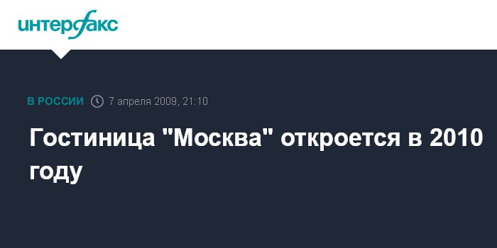 Размещать в своих номерах гостей столицы гостиница сможет только в конце 2010 г., "вместе с тем, если все сложится удачно, то офисные и торговые помещения могут быть введены в эксплуатацию уже в этом году", отметил он.