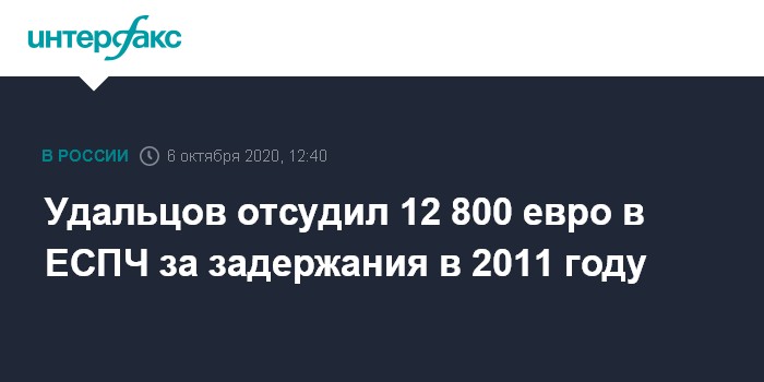 Москва. 6 октября. INTERFAX.RU - ЕСПЧ присудил координатору "Левого фронта" Сергею Удальцову 12 800 евро компенсации за нарушения его прав в связи с серией задержаний в Москве в 2011 году.