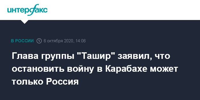 Глава группы "Ташир" заявил, что остановить войну в Карабахе может только Россия