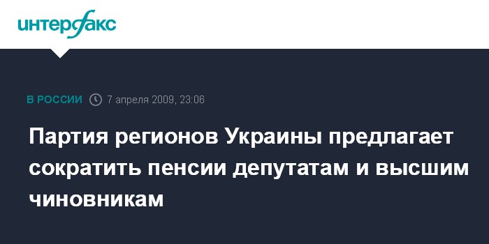 Партия регионов Украины предлагает сократить пенсии депутатам и высшим чиновникам