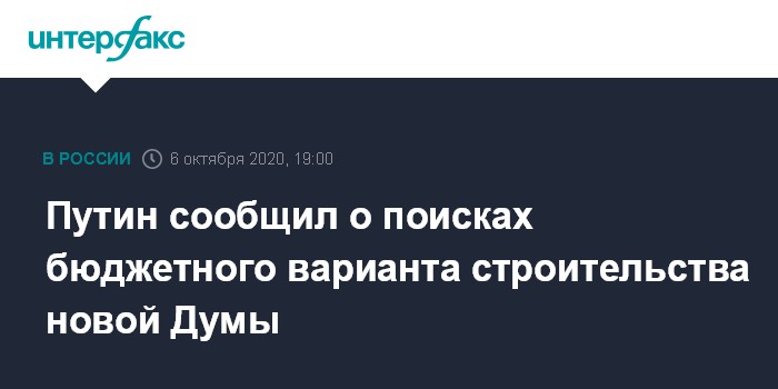 Путин сообщил о поисках бюджетного варианта строительства новой Думы