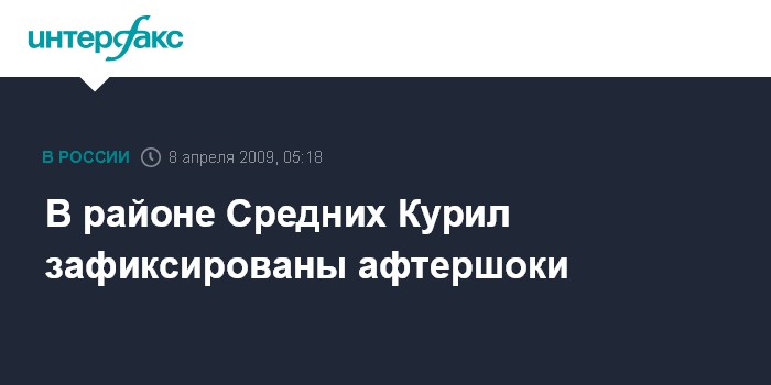 Южно-Сахалинск. 8 апреля. ИНТЕРФАКС-ДАЛЬНИЙ ВОСТОК - Повторные сейсмические толчки зарегистрированы в районе Средних Курил после сильного землетрясения магнитудой 6,8, которое произошло в этом районе во вторник в 15:24 сахалинского времени (8:24 мск).