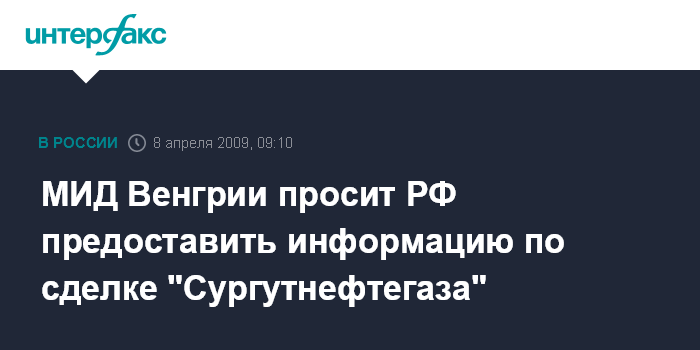 МИД Венгрии просит РФ предоставить информацию по сделке "Сургутнефтегаза"