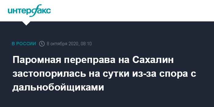 Москва. 8 октября. INTERFAX.RU - Паромная переправа Холмск-Ванино была заблокирована почти на сутки из-за конфликта дальнобойщиков с администрацией Холмского морского торгового порта (ПАО "ХМТП") – крупнейшего порта Сахалина – по поводу тарифов стивидора.