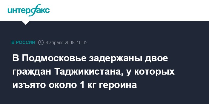 "7 апреля в 16:00 у дома номер 7 на Коммунистической улице в городе Мытищи сотрудниками местного уголовного розыска были задержаны двое граждан Таджикистана - женщина 1981 года рождения и мужчина 1983 года рождения. При обыске у них было обнаружено и изъято 858,4 грамма героина", - сказал собеседник агентства.