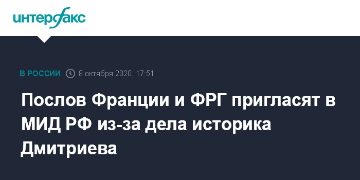 Послов Франции и ФРГ пригласят в МИД РФ из-за дела историка Дмитриева