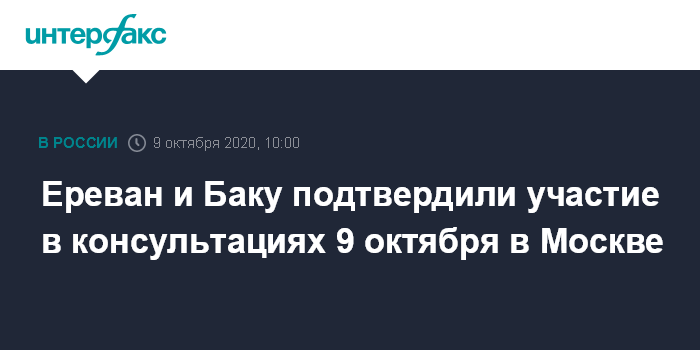 Москва. 9 октября. INTERFAX.RU - Армения и Азербайджан подтвердили готовность отправить своих представителей на консультации в Москву в пятницу, сообщила официальный представитель МИД РФ Мария Захарова.