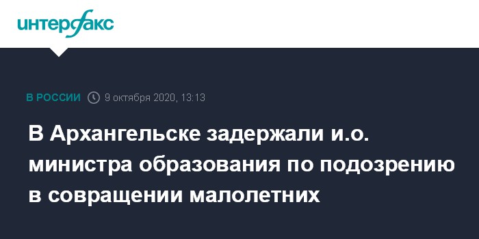 В Архангельске задержали и.о. министра образования по подозрению в совращении малолетних