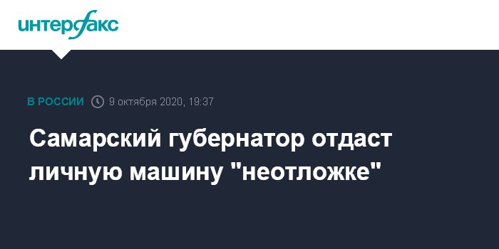 Самарский губернатор отдаст личную машину "неотложке"