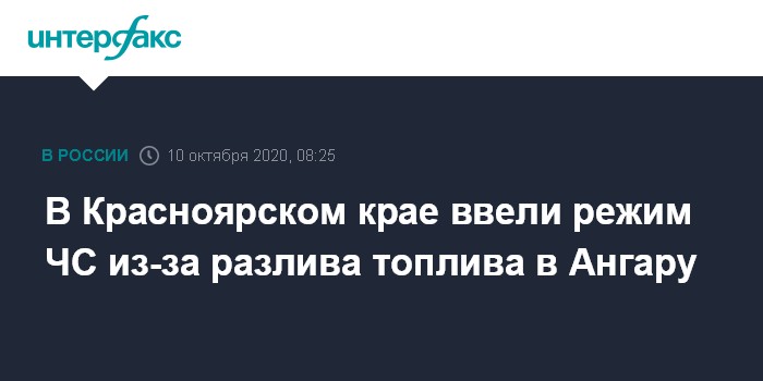 "Постановление администрации Кежемского района от 9 октября введен режим ЧС на территории района в связи с разливом нефтепродуктов в реку Ангара", - говорится в сообщении.