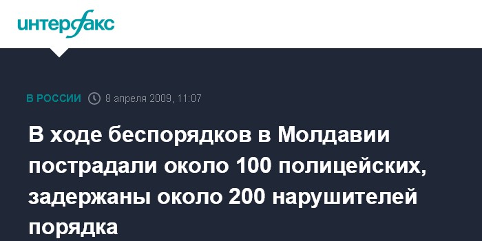 В ходе беспорядков в Молдавии пострадали около 100 полицейских, задержаны около 200 нарушителей порядка