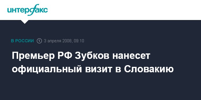 Москва. 3 апреля. INTERFAX.RU - Премьер-министр РФ Виктор Зубков в четверг отправится с двухдневным официальным визитом в Словацкую республику.