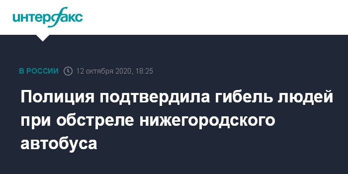Москва. 12 октября. INTERFAX.RU - В полиции подтвердили обстрел автобуса в Нижегородской области, в результате чего, по предварительным данным, есть погибшие.