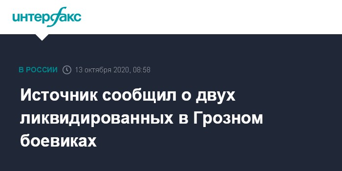 Москва. 13 октября. INTERFAX.RU - В Грозном произошла перестрелка силовиков с предполагаемыми участниками бандформирований, ликвидированы двое боевиков, сообщил "Интерфаксу" осведомленный источник.