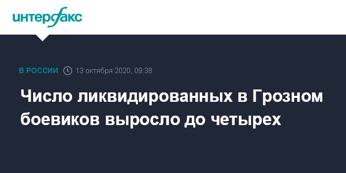 Москва. 13 октября. INTERFAX.RU - В ходе перестрелки в Грозном, по предварительным данным, нейтрализованы четверо участников незаконных вооруженных формирований, сообщил "Интерфаксу" осведомлённый источник.