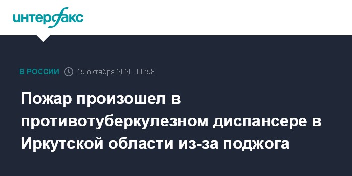Пожар произошел в противотуберкулезном диспансере в Иркутской области из-за поджога