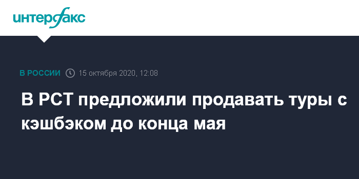 Москва. 15 октября. INTERFAX.RU - Российский союз туриндустрии (РСТ) предложил главе правительства РФ Михаилу Мишустину распространить действие второй программы кэшбэка на туры как минимум до конца мая 2021 года.