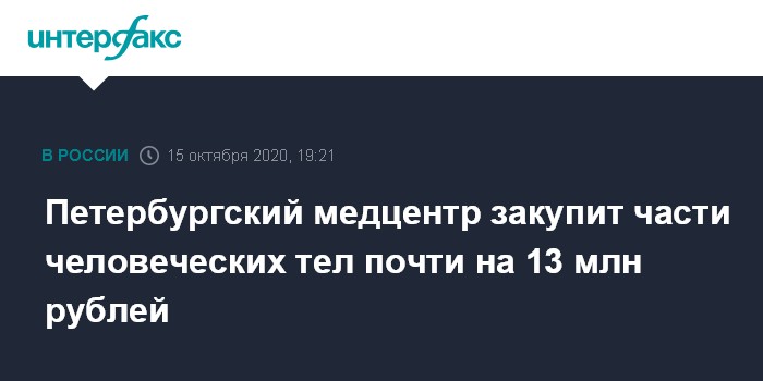 Петербургский медцентр закупит части человеческих тел почти на 13 млн рублей