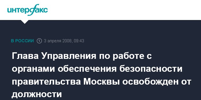 Глава Управления по работе с органами обеспечения безопасности правительства Москвы освобожден от должности