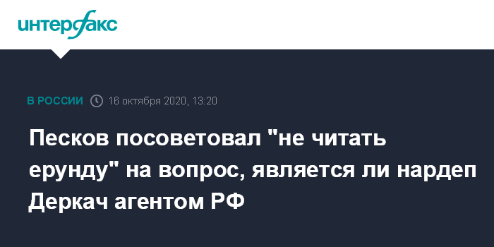 В ответ на пояснение журналиста, что нардепа Украины Андрея Деркача называют российским агентом, пресс-секретарь президента со смехом поинтересовался "почему только его называют агентом?".