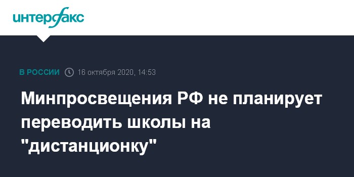 Москва. 16 октября. INTERFAX.RU - В министерстве просвещения нет планов по переводу российских школ на дистанционное обучение, заявил глава ведомства Сергей Кравцов.