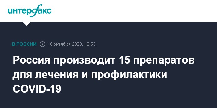 Россия производит 15 препаратов для лечения и профилактики COVID-19