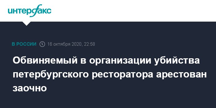 Обвиняемый в организации убийства петербургского ресторатора арестован заочно