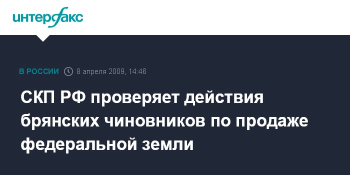 "Главным следственным управлением СКП РФ с привлечением сотрудников ДЭБ МВД России проводится доследственная проверка по заявлению одного из предпринимателей о незаконных действиях ряда должностных лиц Брянской области при продаже земель, находящихся в федеральной собственности", - сообщил "Интерфаксу" в среду официальный представитель СКП Владимир Маркин.