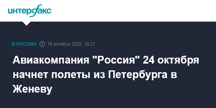 Москва. 18 октября. INTERFAX.RU - Авиакомпания "Россия" 24 октября открывает регулярные рейсы из Санкт-Петербурга в Женеву.