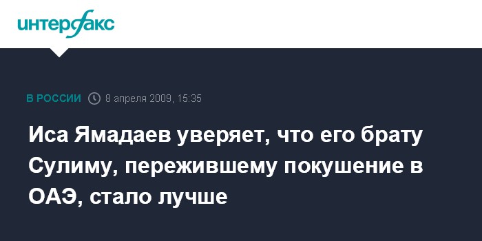 По версии правоохранительных органов, Сулим Ямадаев был убит в результате покушения в Дубае, однако его близкие настаивают на том, что он был сильно ранен, но остался жив. Иса Ямадаев сказал, что рассматривает вопрос о подаче заявления в правоохранительные органы РФ в связи с инцидентом с его братом в Дубае.