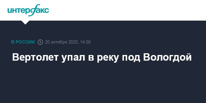 По его словам, вертолет упал в реку Сухона у населенного пункта Бобровское, судьба экипажа остается неизвестной.