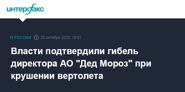 Власти подтвердили гибель директора АО "Дед Мороз" при крушении вертолета