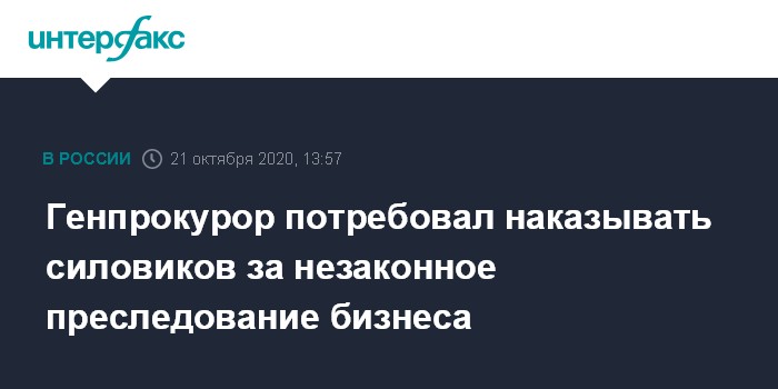 Генпрокурор потребовал наказывать силовиков за незаконное преследование бизнеса