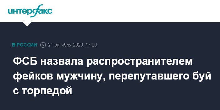 ФСБ назвала распространителем фейков мужчину, перепутавшего буй с торпедой